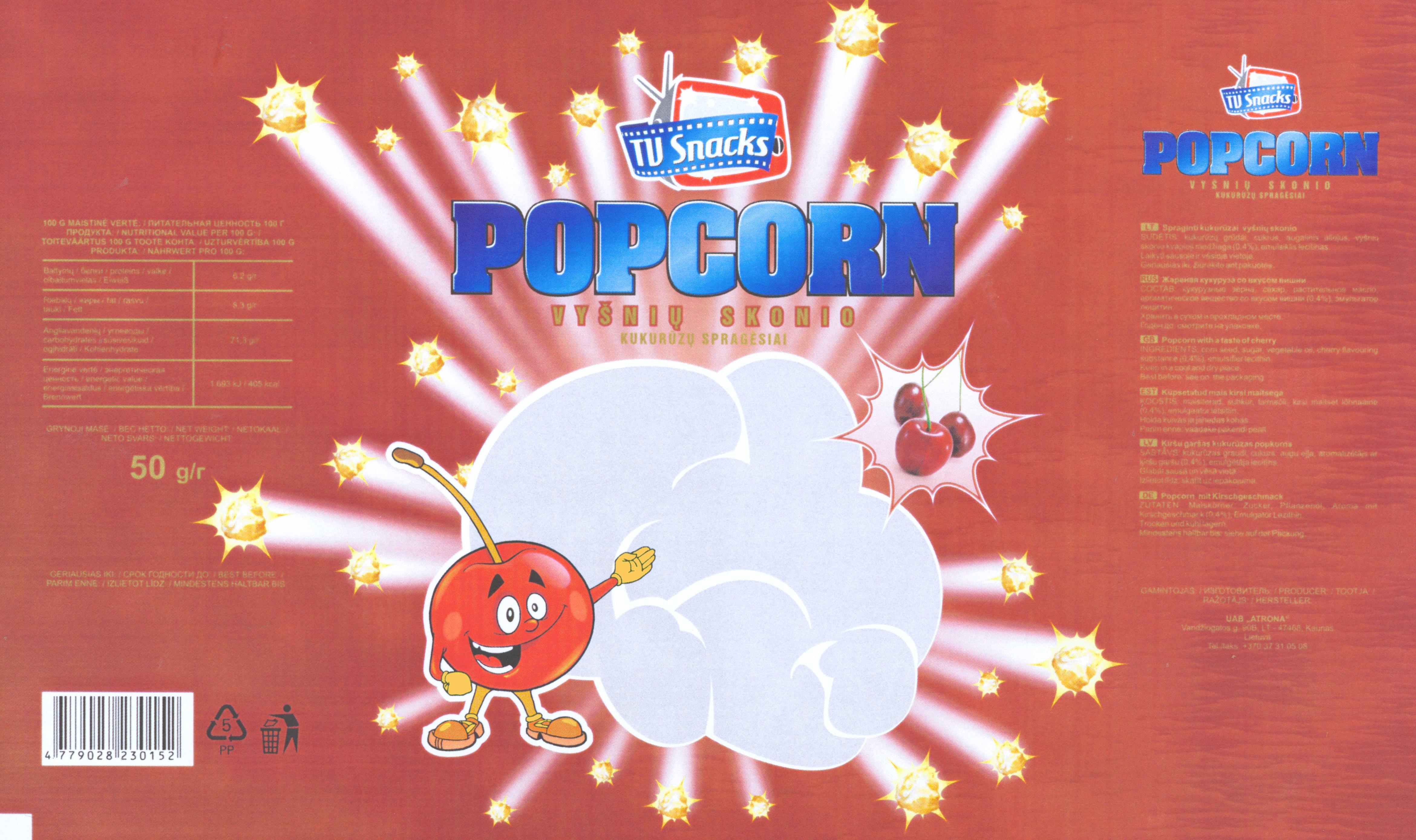 TV Snacks POPCORN VYŠNIŲ SKONIO KUKURŪZŲ SPRAGĖSIAI | Grafinis | 2009 1088 | 61600 | 2019-07-13 | Išregistruotas, nepratęsus galiojimo termino | |